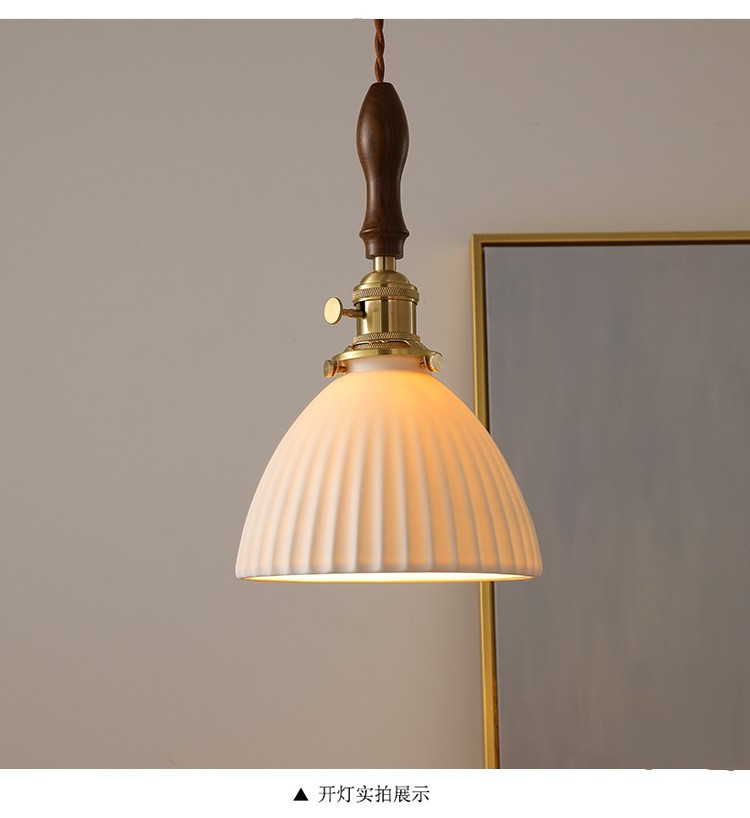 Walnut Vintage Ceramic Copper Bedroom Bedside Chandelier Cafe Brass Single Head Chandelier