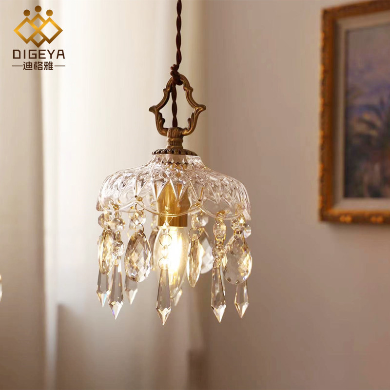 Brass retro crystal small chandelier, entrance corridor balcony bedside chandelier, entrance bar glass chandelier