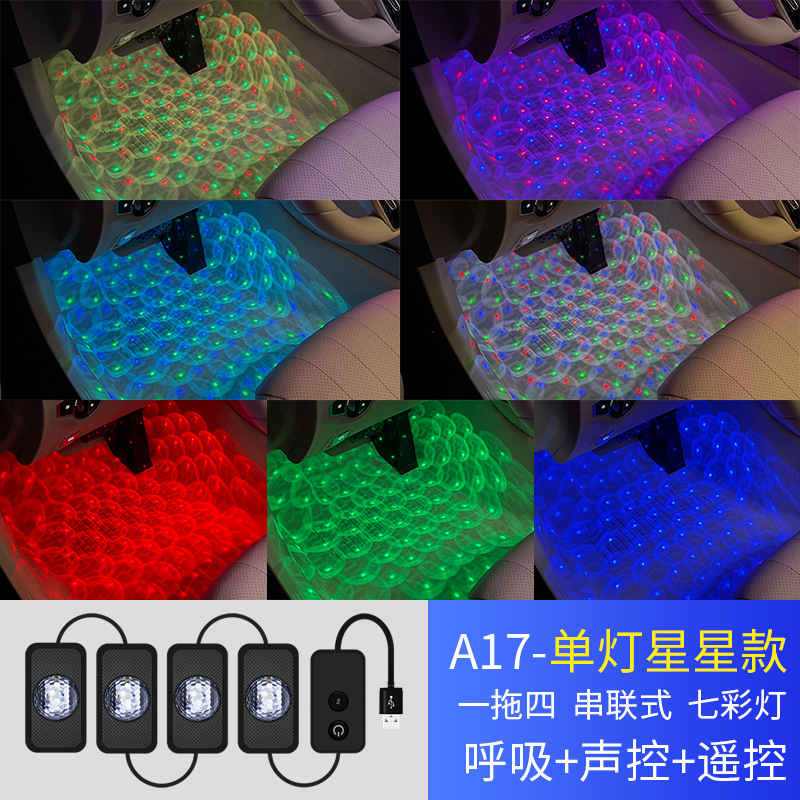 The new car ambient light full of stars a tow four car foot modified colorful voice-activated led decorative atmosphere light