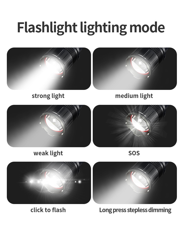 50W LED Super Bright Long-Range Flashlight with Camping Battery 26800 Outdoor High-Intensity Flashlight
