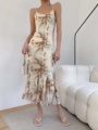 Dress for spring and autumn, petite women, mid-length suspender dress, seaside atmosphere, vacation Dress