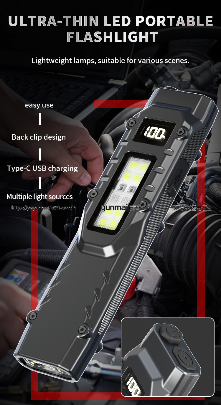 Flashlight with pen clip, three light sources, high-intensity self-defense, mini ultra-thin portable outdoor flashlight