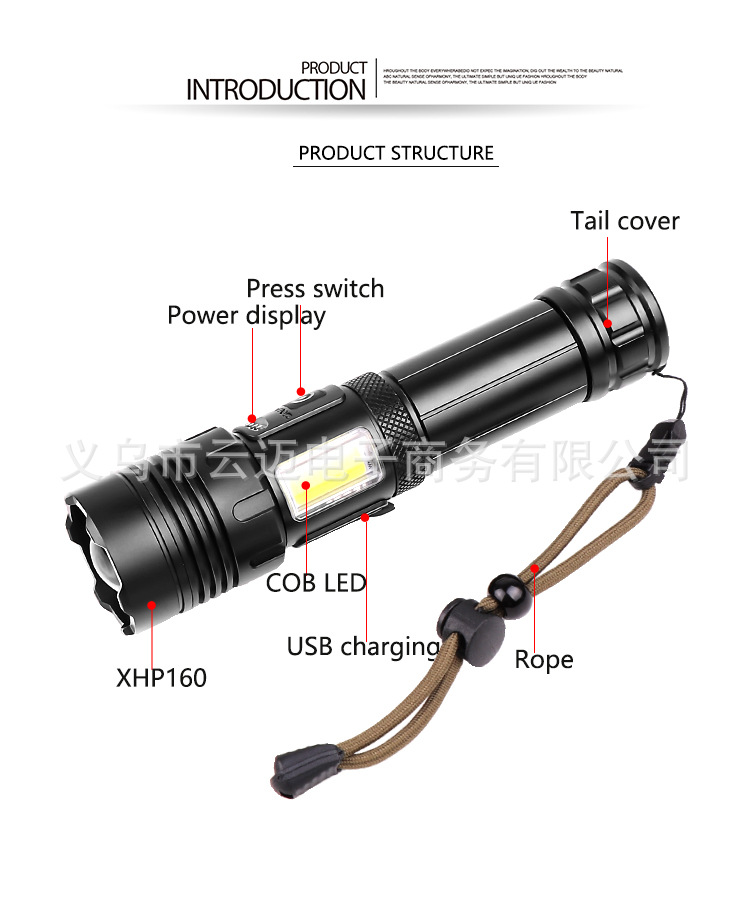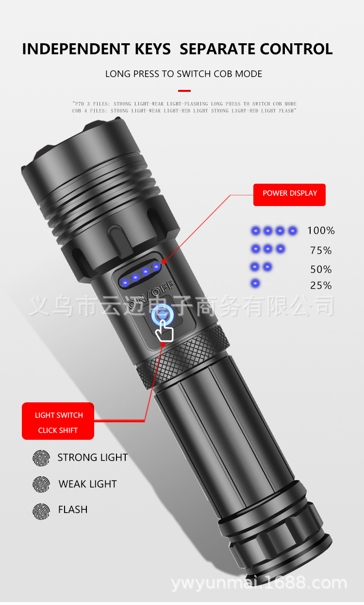 XHP70+COB Red and White High-Intensity Flashlight with Zoom P70