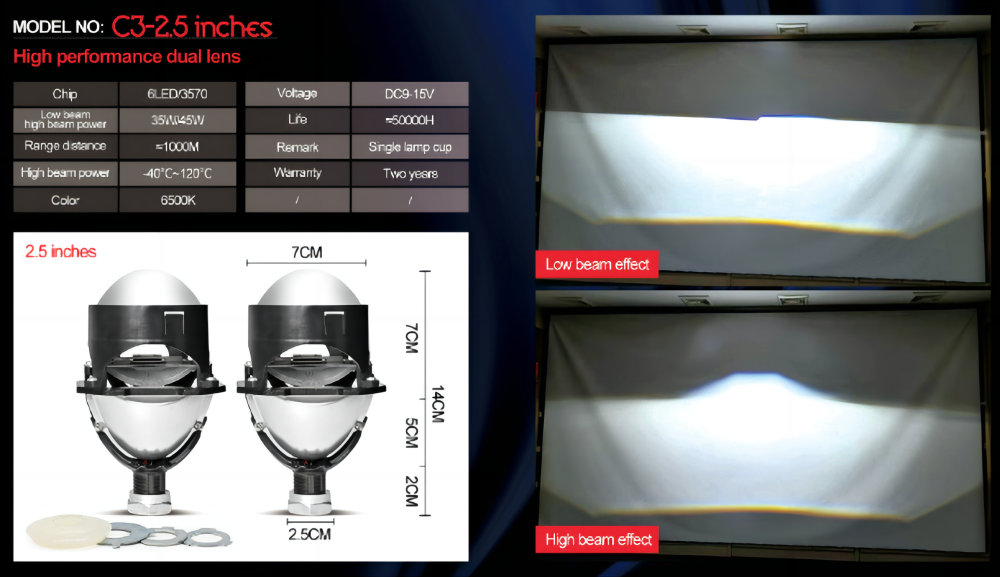 C3 1PCS Automotive LED headlights fog lights 2.5-inch lossless dual-light lens H4 H7 dual lamp cup high-power laser lens