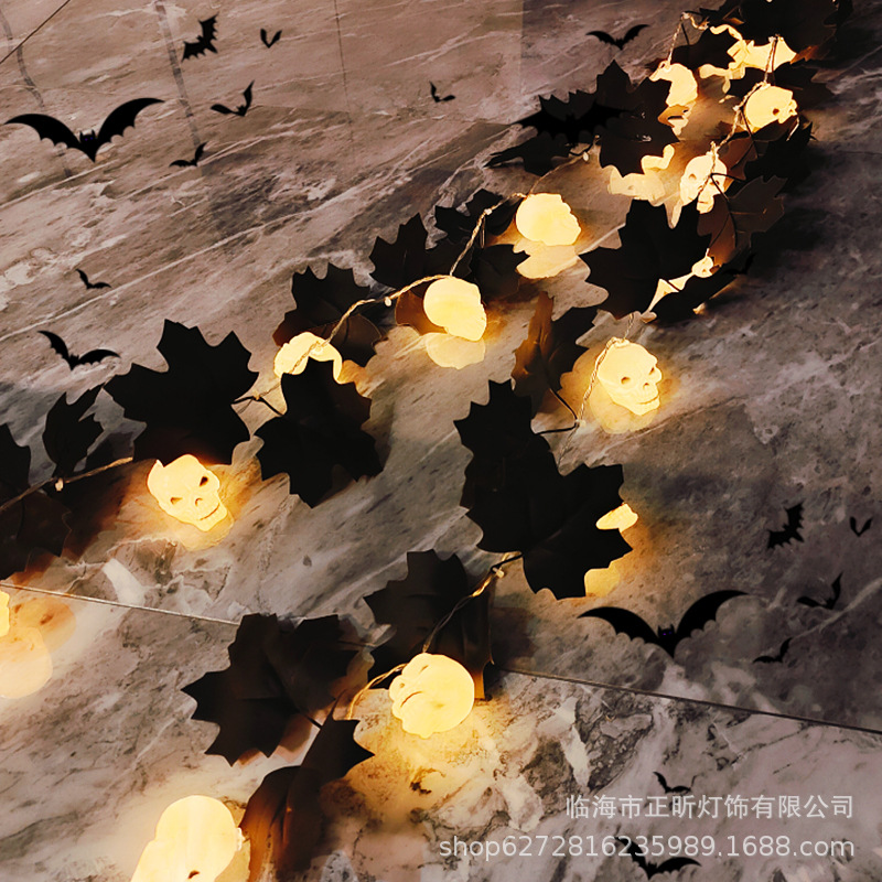 Halloween light string black maple leaf skull LED light string ghost festival atmosphere decoration light party ghost