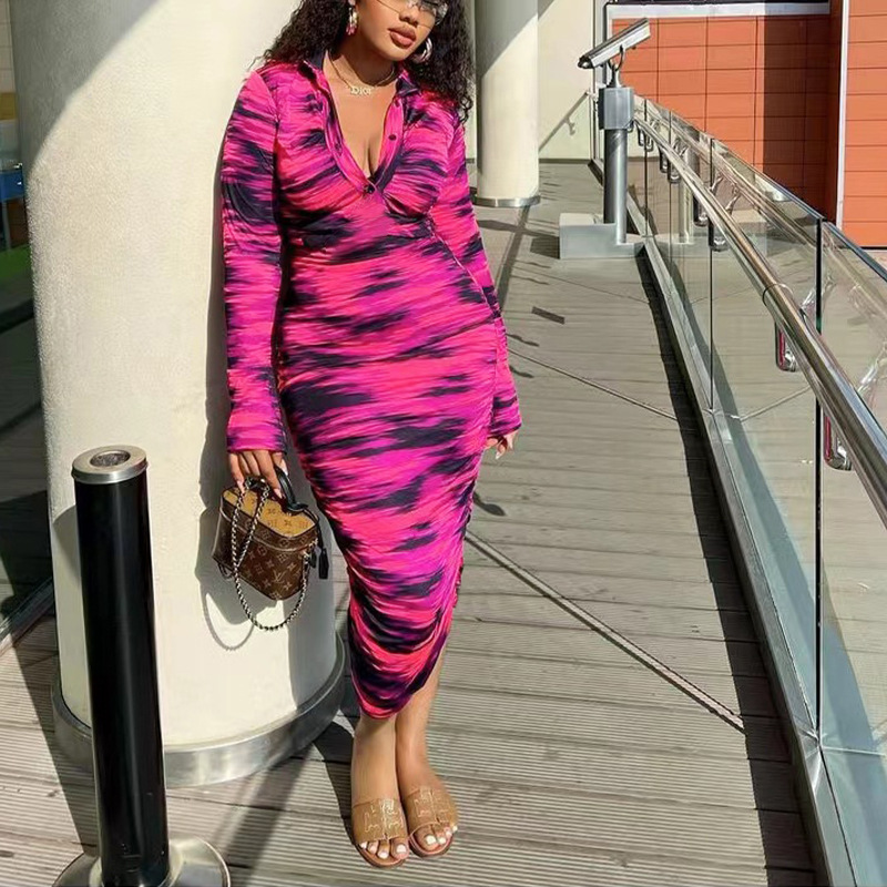 Pleated long-sleeved slim-fitting dress European and American autumn new women's long skirt fashionable casual women's clothing