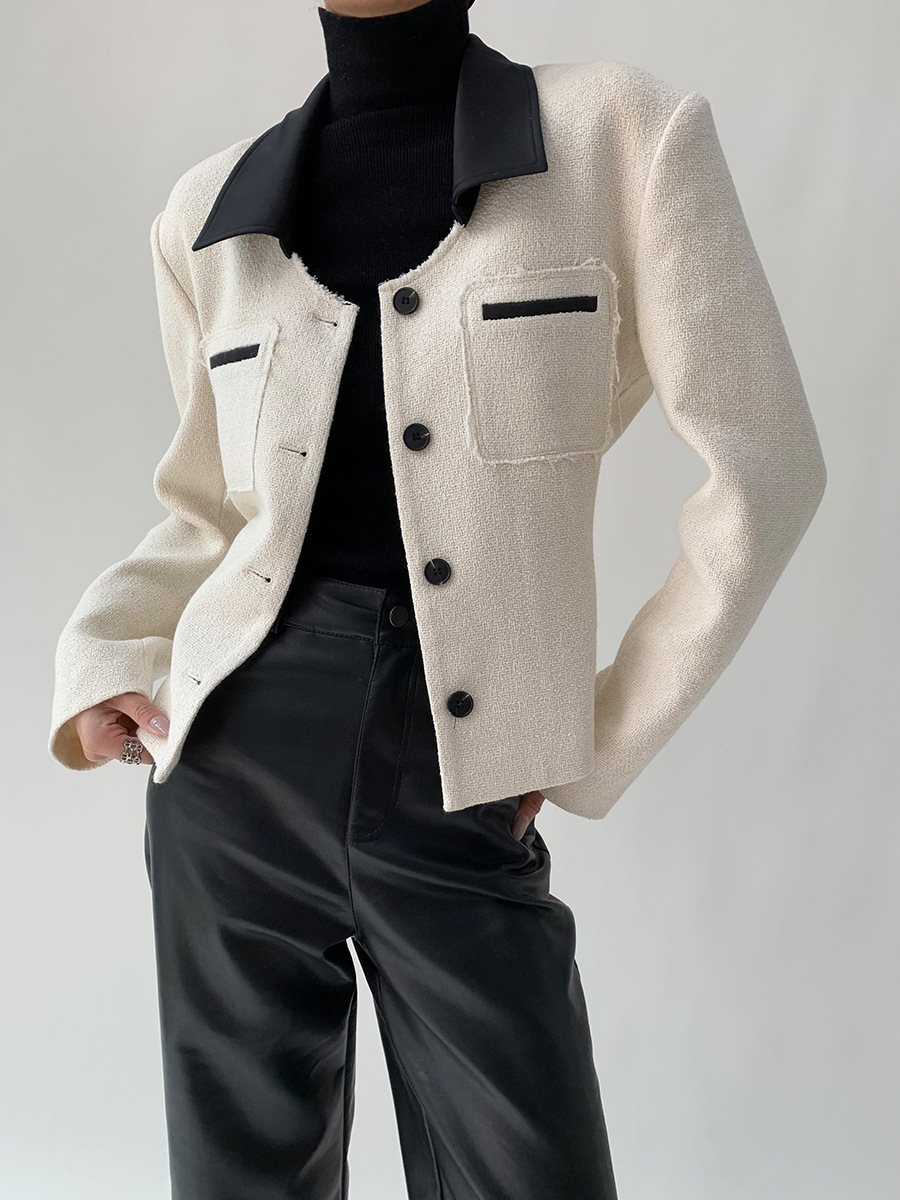 New autumn style royal sister style jacket temperament contrast color design urban temperament square collar suit women