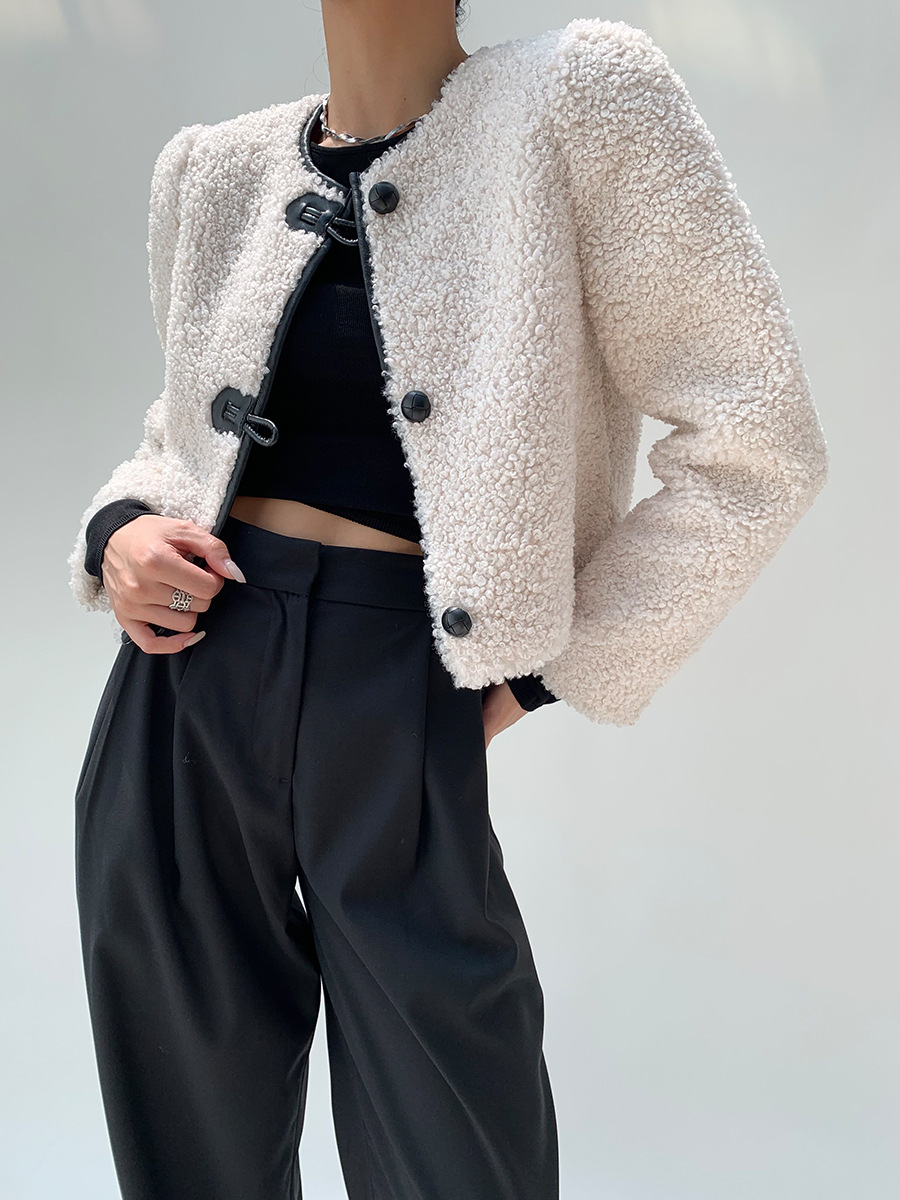 Spring new solid color fur lady Chanel style short top versatile coat for women
