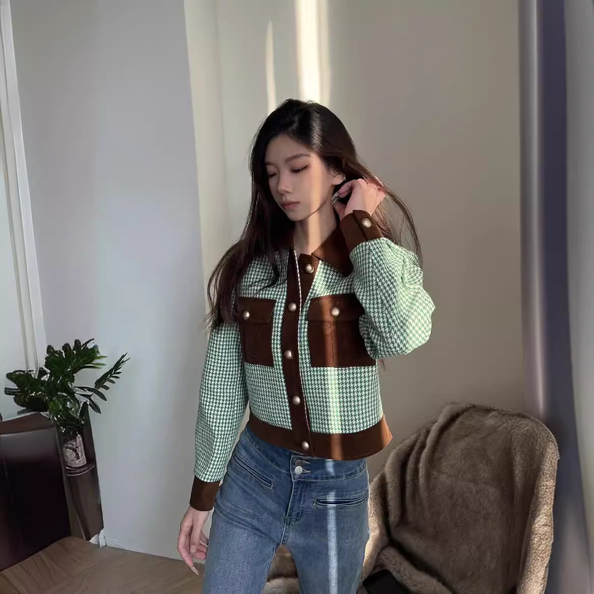 New autumn style Chanel style temperament design contrast color retro fashion short suit jacket