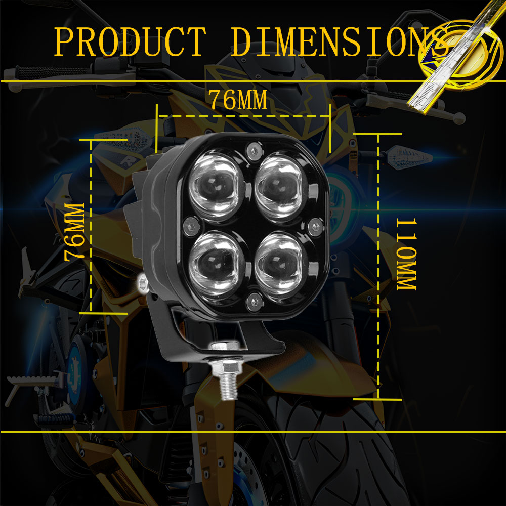 2Pcs 12V-80V 4-Eyes Auxiliary Motorcycle Spotlight Headlight LED Lamps Fog Light